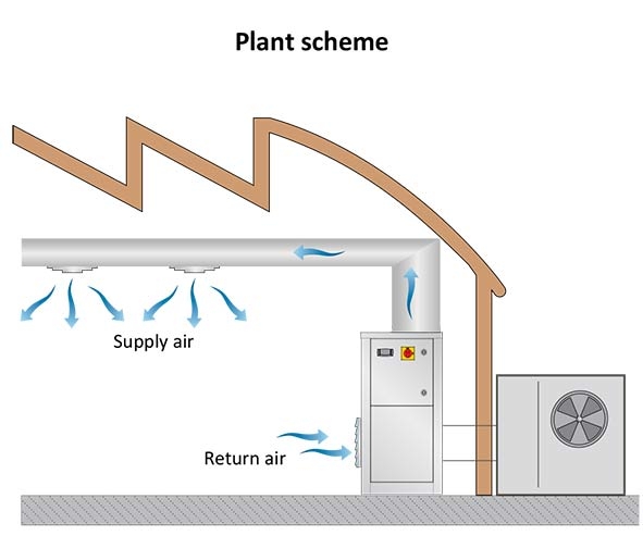 Dehumidifiers are high-performances units especially designed for industrial or commercial purposes where it is necessary the simultaneous control of temperature and humidity or water vapor condensation should be prevented. These units are particularly indicated for archives, ironing rooms, bookstores, cheese factories, underground rooms, cellars and industrial sites where high humidity level is present. This series comprises 6 models which cover a capacity range from 263 to 940 l/24h. The units are designed for easy maintenance and service, each part being readily accessible and, when required, easily replaceable thus reducing service and maintenance costs. The units are supplied with a solenoid valves set for the hot ga s injection used to defrost the evaporator in case of severe working conditions.